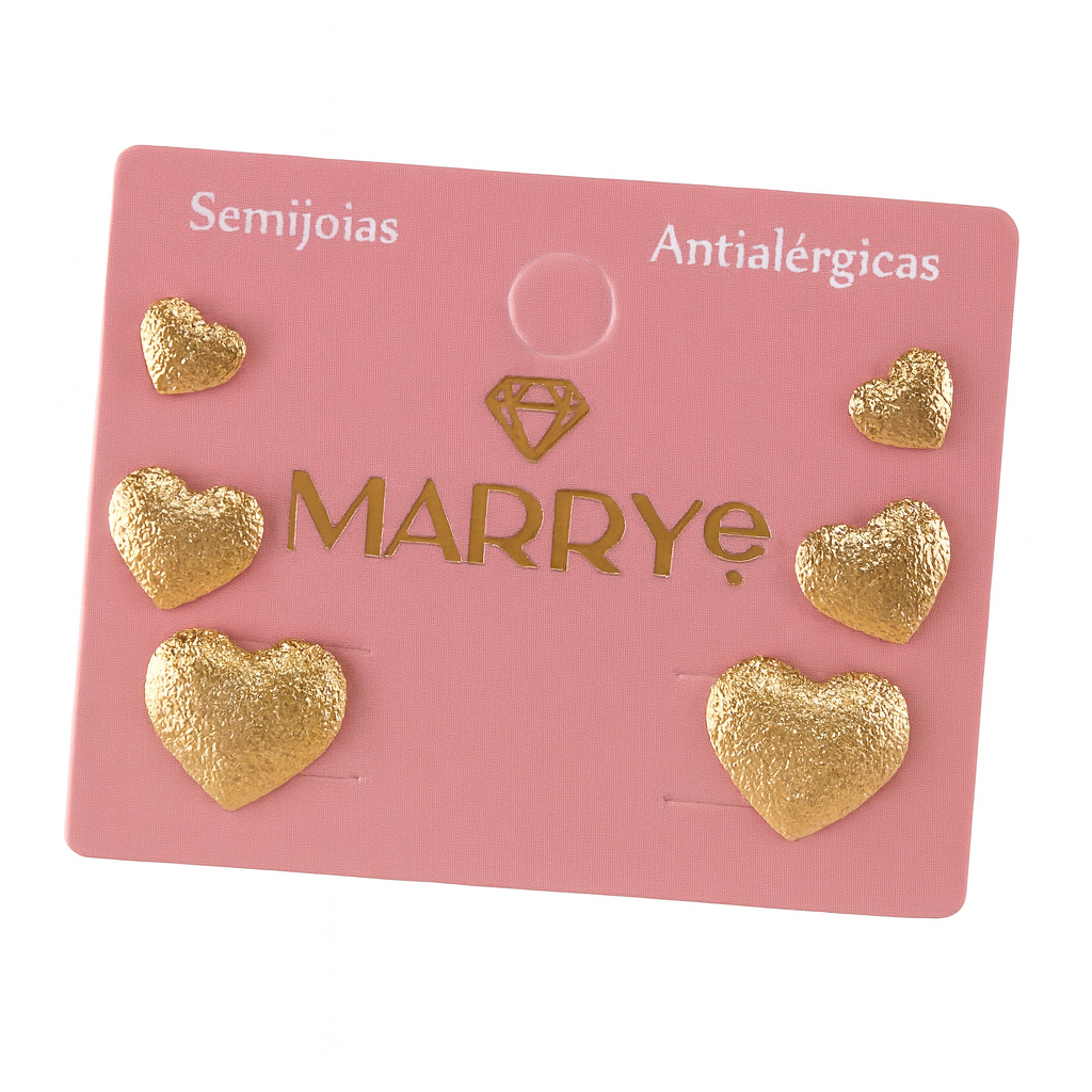 Brinco Semijoia TRIO Coração Texturizado